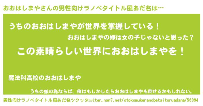 | 胡散臭い通販商品みたいなあだ名 | 『あなたにだけ特別に提供する100年もののヴィンテージワイン…その名も「おおはしまや」』 |