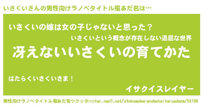 | 胡散臭い通販商品みたいなあだ名 | 『伝統あるサプリメント…その名も「いさくい」』 |