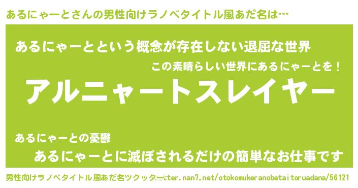 あるにゃーとさんの男性向けラノベタイトル風あだ名をツクッター!