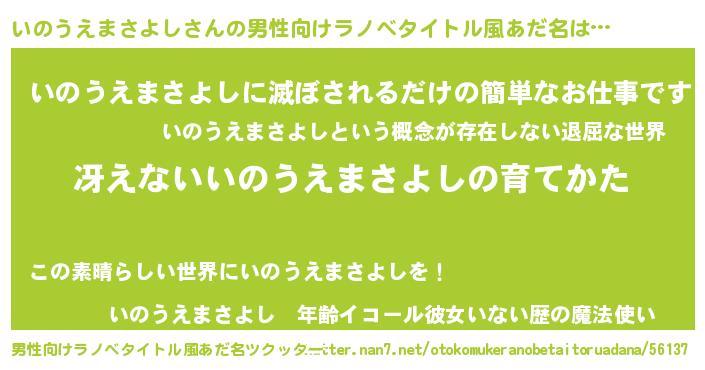 | 胡散臭い通販商品みたいなあだ名 | 『来世でも幸せになれる水素水…その名も「いのうえまさよし」』 |