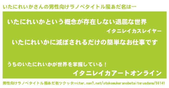 | ヒーロー風カッコイイあだ名 | 『ネオイタニレイカ』『仮面イタダー』 |