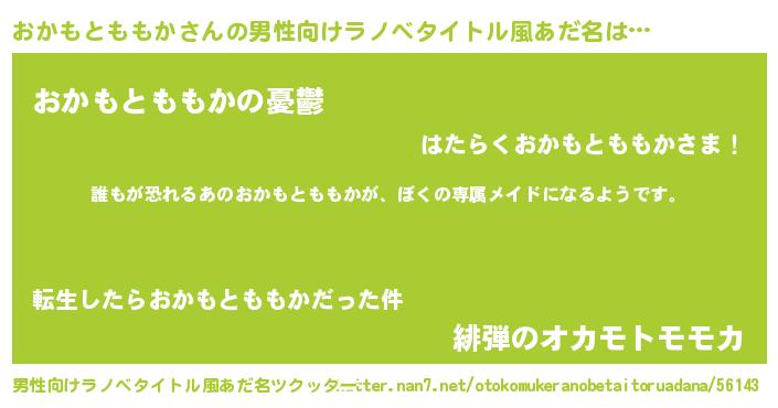 | 女子向けラノベタイトル風あだ名 | 『異世界でカフェおかもとももかを開店しました。』 |