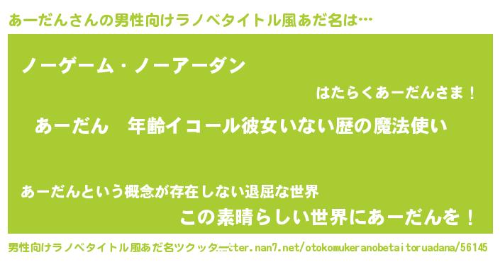 | 女子向けラノベタイトル風あだ名 | 『あーだんの玉の輿計画!』 |