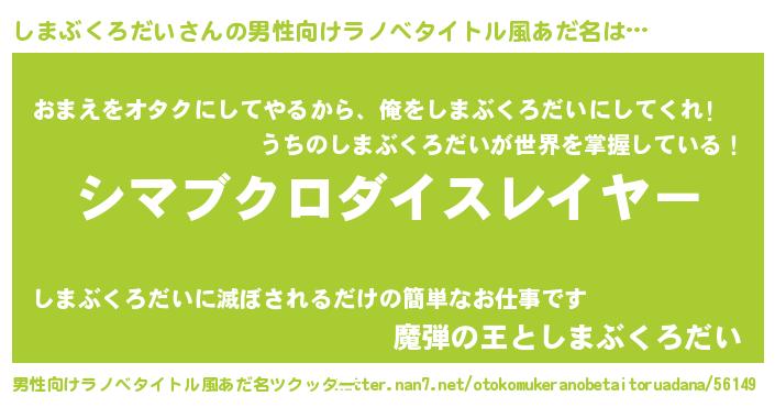 | ヘコむあだ名 | 『しまぶくろだい(笑)』『しまもー』 |
