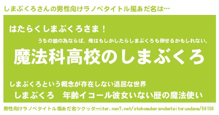 しまぶくろさんの男性向けラノベタイトル風あだ名をツクッター!