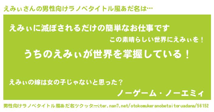 | 女子向けラノベタイトル風あだ名 | 『男装えみぃの憂鬱な任務』 |