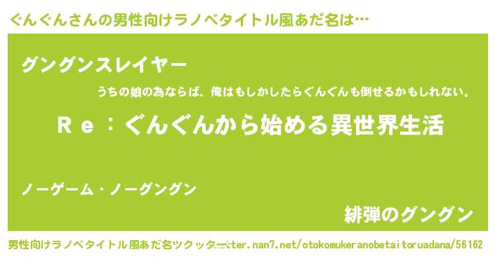| 女子向けラノベタイトル風あだ名 | 『ぐんぐんストレイドッグス』 |