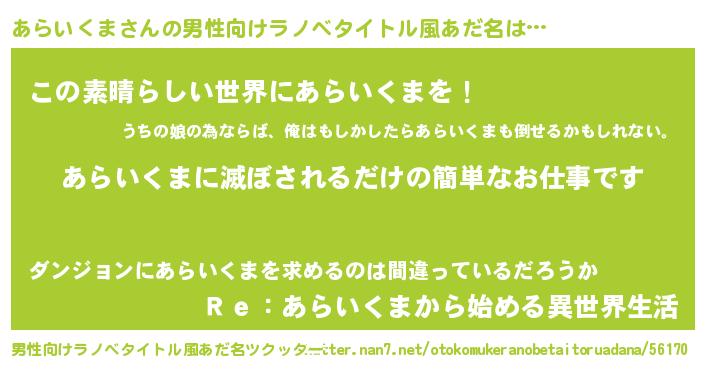 | 胡散臭い通販商品みたいなあだ名 | 『あなたにだけ特別に提供する世界で10本だけ現存している希少なブランデー…その名も「あらいくま」』 |