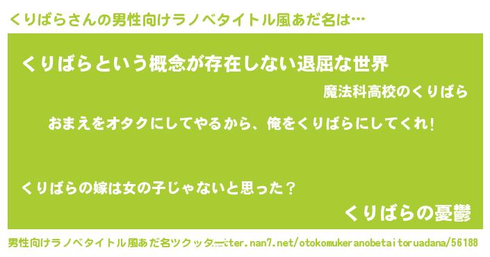 | ヒーロー風カッコイイあだ名 | 『正義の使者くりばら』『ネオクリバラ』 |