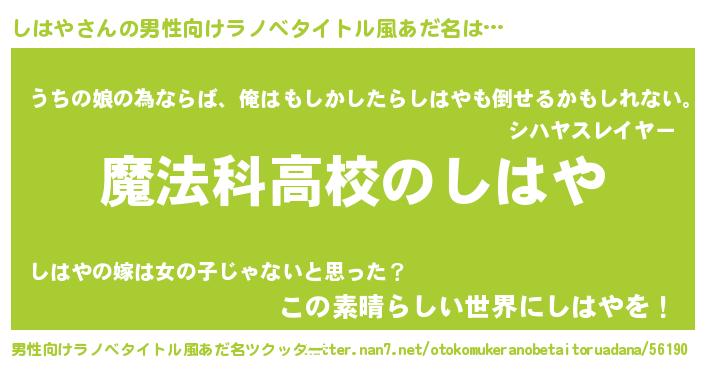 | 意味不明あだ名 | 『自称しはや』『しはやフォーエバー』 |