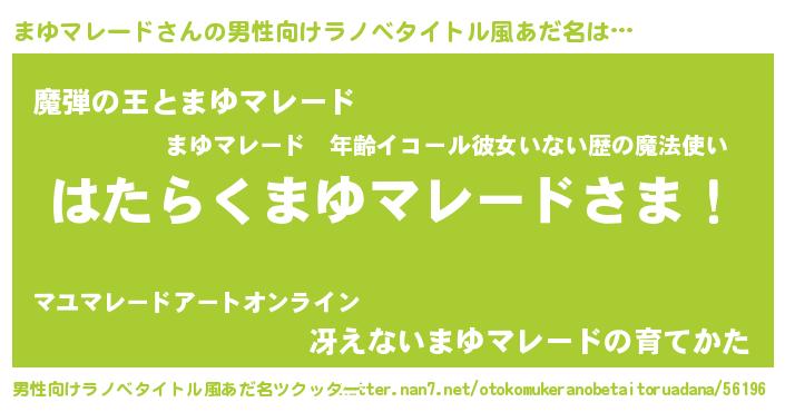 | 欧米人風あだ名 | 『アンジェラ・まゆマレード』 |