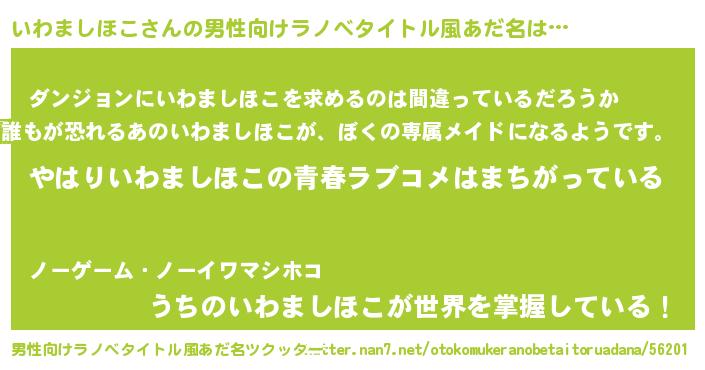 | 女子向けラノベタイトル風あだ名 | 『いわましほこの雑貨屋さん』 |