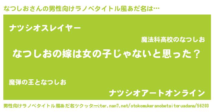 | 女子向けラノベタイトル風あだ名 | 『なつしお様がみてる』 |