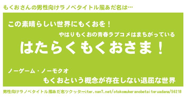 | 女子向けラノベタイトル風あだ名 | 『首の姫と首なしもくお』『もくお恋絵巻』 |