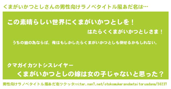 くまがいかつとしさんの男性向けラノベタイトル風あだ名をツクッター!