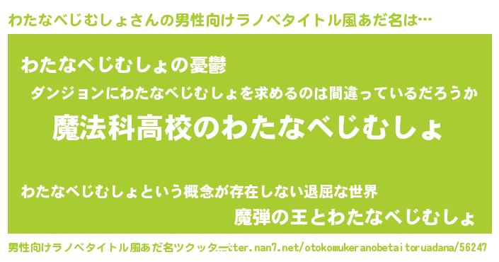 | 女子向けラノベタイトル風あだ名 | 『わたなべじむしょアンティーク』 |