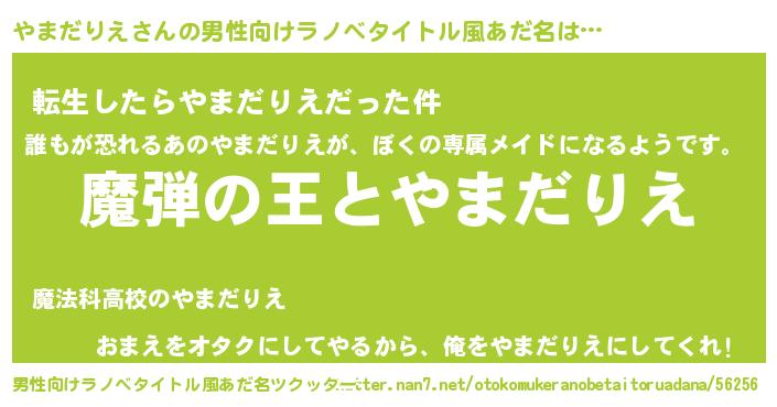 | 女子向けラノベタイトル風あだ名 | 『乙女ゲームの破滅フラグしかない悪役やまだりえに転生してしまった…』 |