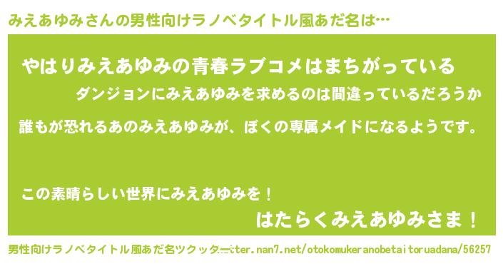みえあゆみさんの男性向けラノベタイトル風あだ名をツクッター!