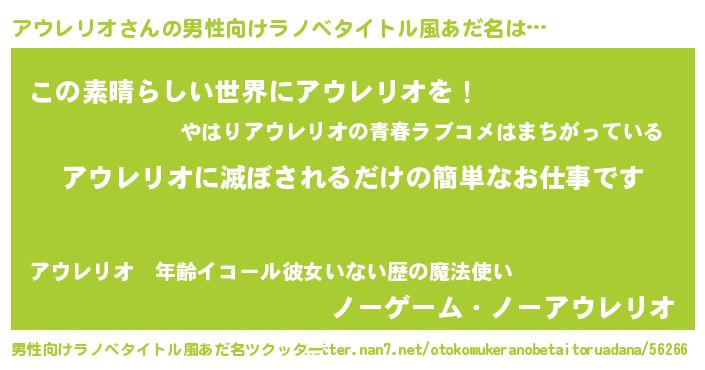 | 意味不明あだ名 | 『住所不定無職アウレリオ(4歳)』 |