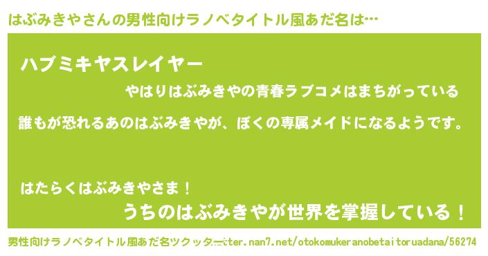 | ヒーロー風カッコイイあだ名 | 『ネオハブミキヤ』『仮面ハブダー』 |