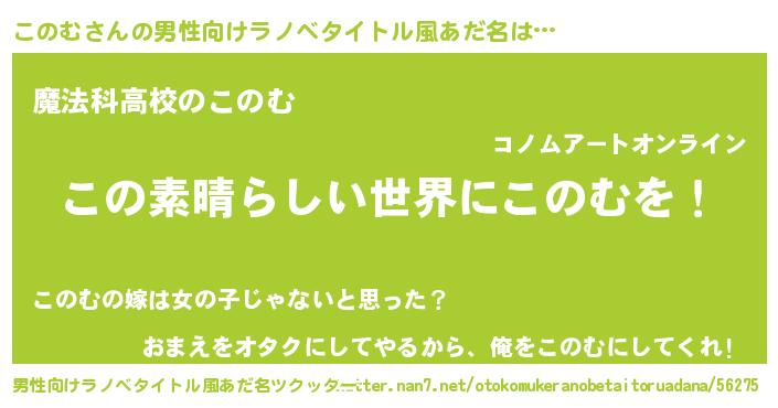 | 胡散臭い通販商品みたいなあだ名 | 『あなたにだけ特別に提供する100年もののヴィンテージワイン…その名も「このむ」』 |