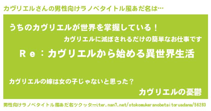 | ヒーロー風カッコイイあだ名 | 『最強戦士カヴリエル』『幻影騎士カヴ』 |
