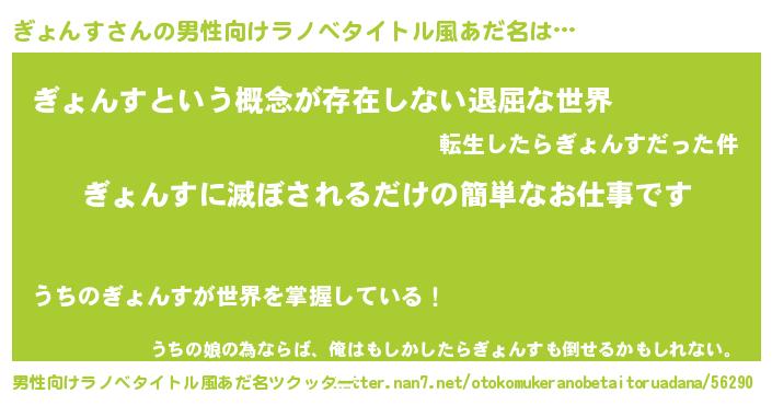 | 胡散臭い通販商品みたいなあだ名 | 『前代未聞の健康食品…その名も「ぎょんす」』 |