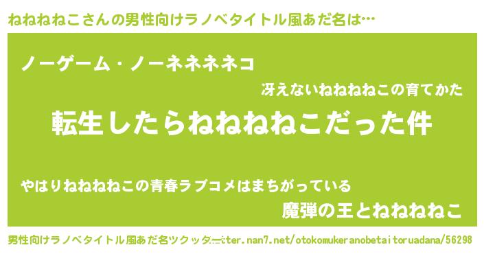 | 料理風あだ名 | 『ねねねねことほうれんそうの和風グラタン』 |