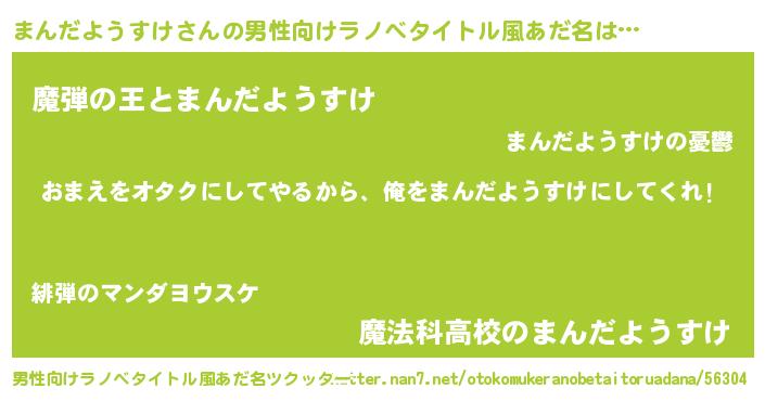 | 女子向けラノベタイトル風あだ名 | 『まんだようすけ夫妻のなれそめ』 |