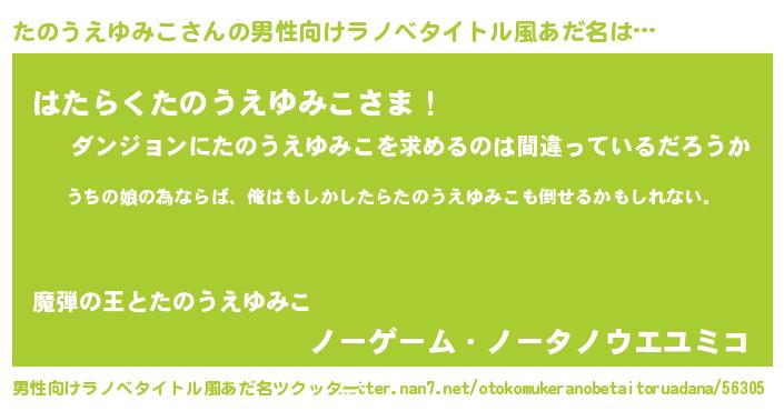 | 女子向けラノベタイトル風あだ名 | 『たのうえゆみこ伯爵の花嫁』 |
