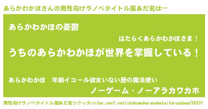 | 胡散臭い通販商品みたいなあだ名 | 『億万長者になれる霊験あらたかなお札…その名も「あらかわかほ」』 |