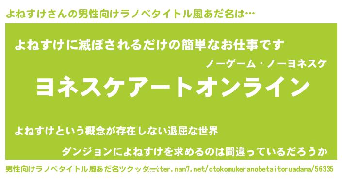 | 女子向けラノベタイトル風あだ名 | 『誰かこのよねすけを説明してください! ~契約から始まるウェディング~』 |