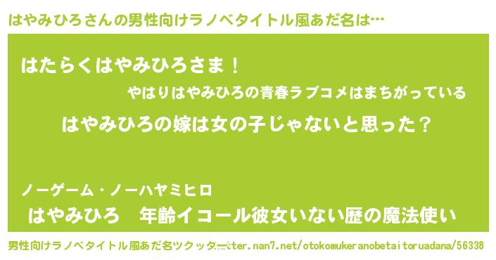 | 女子向けラノベタイトル風あだ名 | 『はやみひろ様がみてる』 |