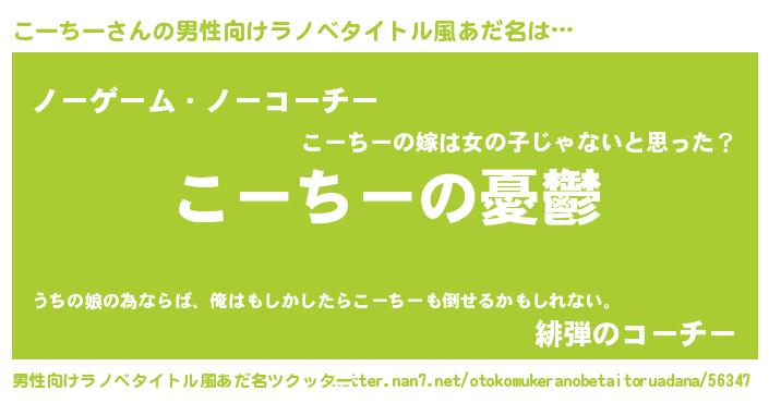 | 女子向けラノベタイトル風あだ名 | 『(仮)こーちーのやんごとなき事情』 |