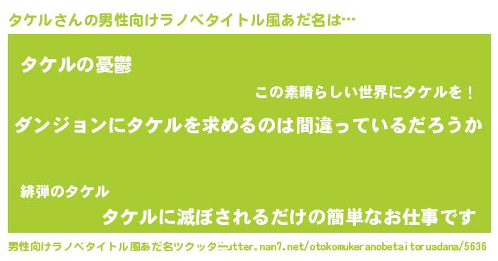 | 女子向けラノベタイトル風あだ名 | 『タケルは平凡を望む』 |
