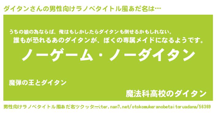 | 女子向けラノベタイトル風あだ名 | 『死神ダイタンの再婚』 |