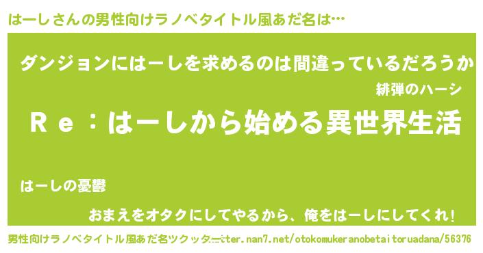 | ヒーロー風カッコイイあだ名 | 『究極戦士ハーシ』『魔戒騎士ハー』 |