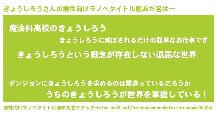 | 胡散臭い通販商品みたいなあだ名 | 『来世でも幸せになれる健康食品…その名も「きょうしろう」』 |