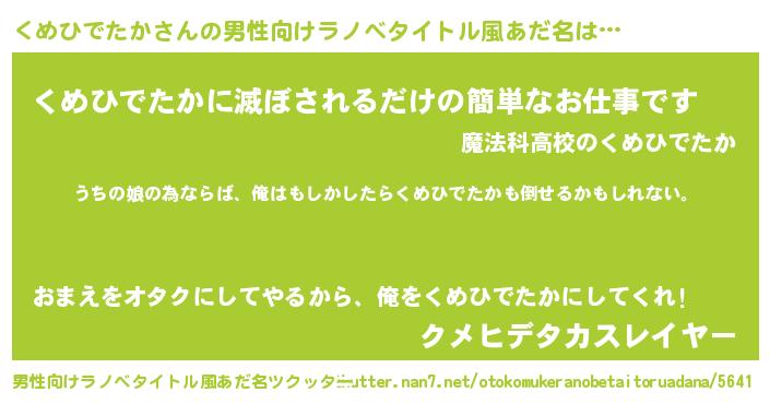 | 女子向けラノベタイトル風あだ名 | 『くめひでたか伯爵の花嫁』 |