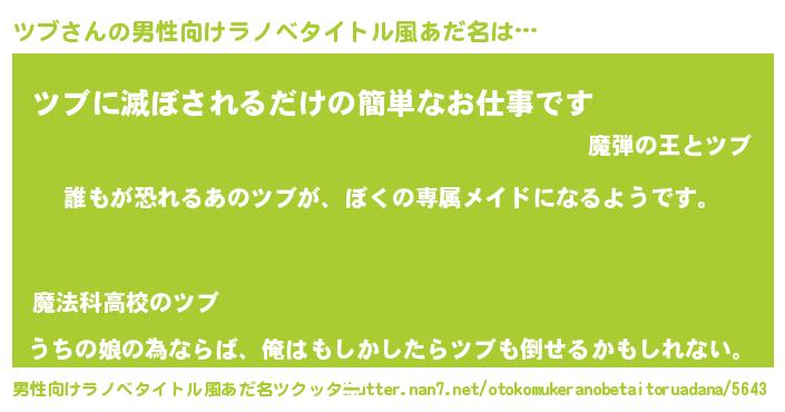| ファンタジー風あだ名 | 『ツブディッシュ』『エターナルツブー』 |