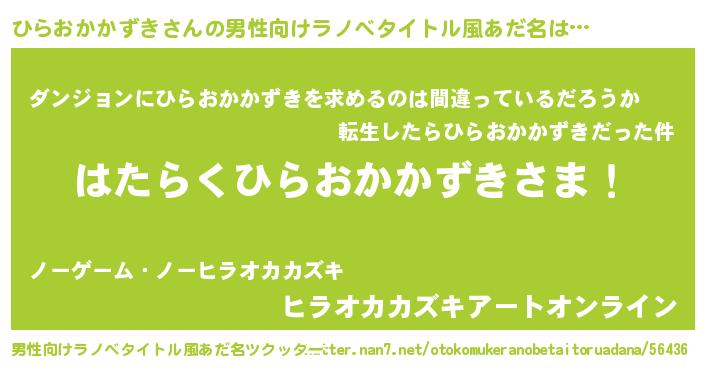 | 意味不明あだ名 | 『とにかく怪しいひらおかかずき』 |