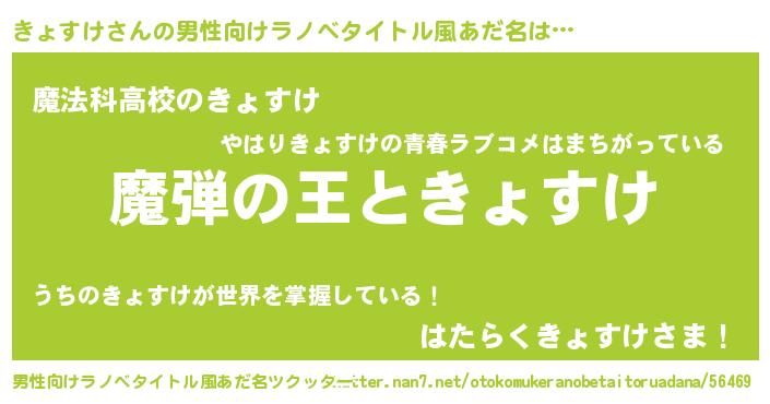| 意味不明あだ名 | 『住所不定無職きょすけ(43歳)』 |