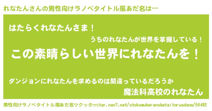 | 意味不明あだ名 | 『住所不定無職れなたん(13歳)』 |