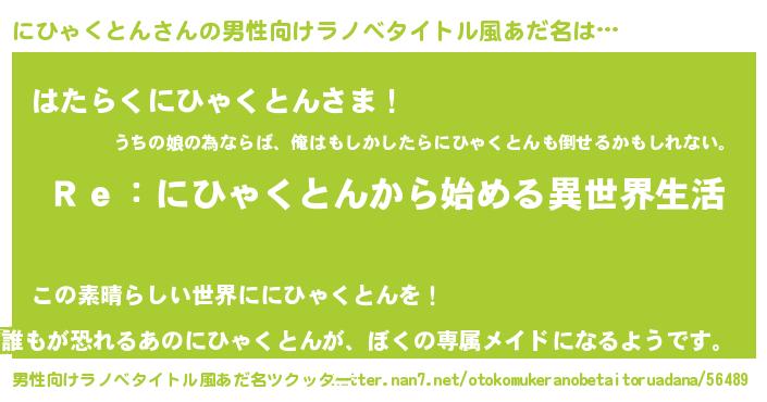 | 女子向けラノベタイトル風あだ名 | 『にひゃくとんストレイドッグス』 |