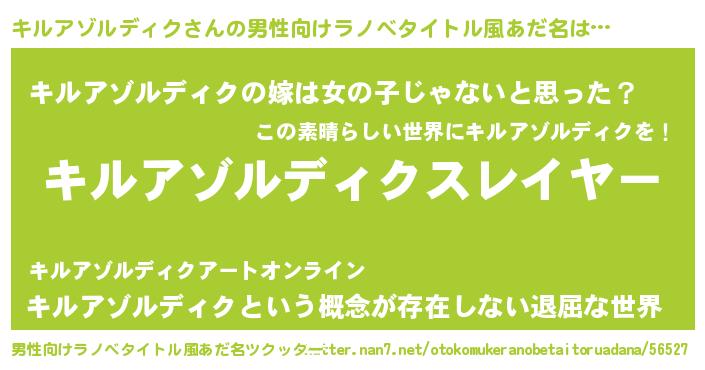 | 胡散臭い通販商品みたいなあだ名 | 『信頼と実績のペンダント…その名も「キルアゾルディク」』 |