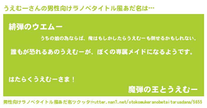 | 女子向けラノベタイトル風あだ名 | 『うえむーの契約王妃』 |