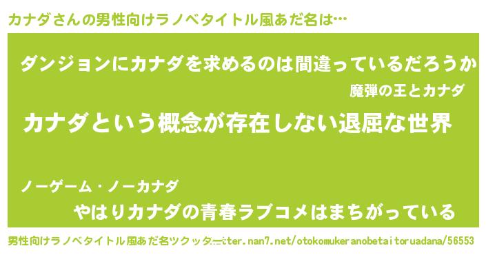 | 女子向けラノベタイトル風あだ名 | 『カナダの契約王妃』『カナダ恋絵巻』 |