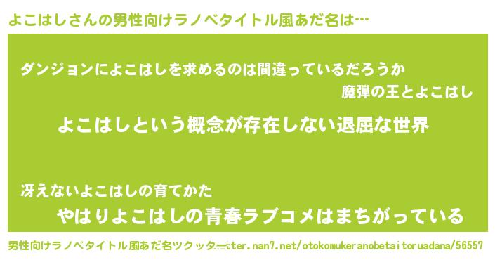 | ヒーロー風カッコイイあだ名 | 『ネオヨコハシ』『暗黒騎士ヨコ』 |