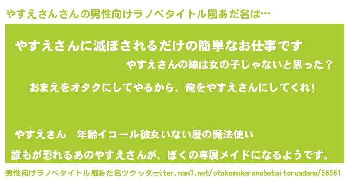 | 女子向けラノベタイトル風あだ名 | 『やすえさん夫妻のなれそめ』 |