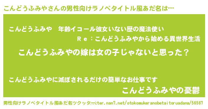 | 女子向けラノベタイトル風あだ名 | 『こんどうふみや様がみてる』 |